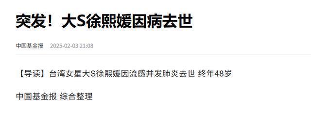 中国基金报2025-02-03突发!大S徐熙媛因病去世